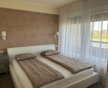 - guļamistabā divvietīga gulta ar vienu lielu matraci,